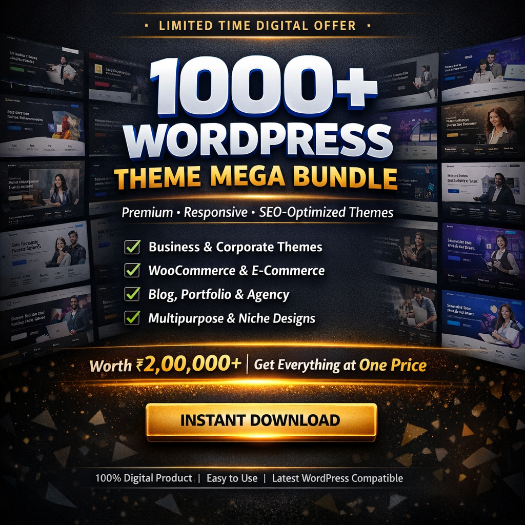 Buying premium themes individually can cost ₹2,000–₹5,000 per theme. With this mega bundle, you get 1000+ themes at a single low price, making it one of the best value digital products for WordPress users.
